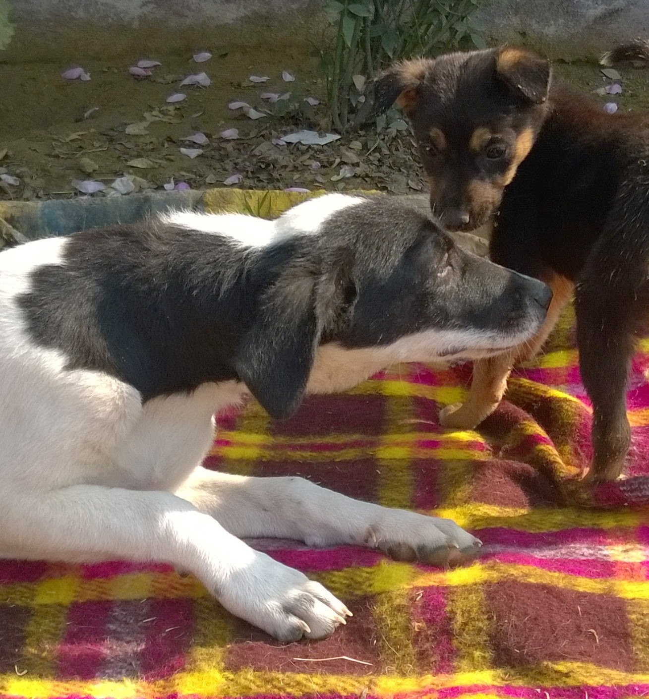 Wonderful animal hero Arti Bhardwaj rushed to the scene and gathered us four tiny remaining survivors. She brought us back to Happy Paws, where she runs an amazing facility for medical boarding and dog rescues. Our survival seemed far from guaranteed at first. We four were so very ill – we were nearly lifeless. Arti nurtured us lovingly and administered the many medications prescribed by the vet if we were to have any chance of survival. She fed us constantly and helped support our recuperation in every way possible. Still, she watched in tears as first one of our siblings, and then another, succumbed. She had given them every possible fighting chance and they had fought valiantly, but they were both too small and too weak to carry on.